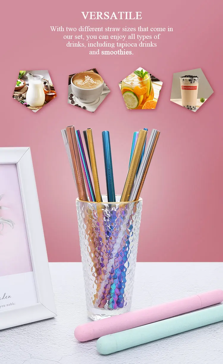 Pailles métalliques en acier inoxydable, les brosses peuvent être emballées dans une petite boîte, pratiques et portables, où que vous soyez, comme les réunions de famille, les bureaux, les pique-niques en plein air, etc., vous pouvez l'utiliser.