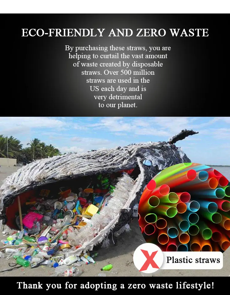 GUI LE MOUVEMENT SANS PLASTIQUE- Les pailles en plastique ne peuvent pas être recyclées et ne se décomposent pas, ce qui entraîne une pollution à long terme de notre terre et de nos océans.Selon le rapport, les Américains utilisent 500 millions de pailles chaque jour, nous en faisons quelque chose.Une paille métallique réutilisable peut remplacer plus de 2000 pailles en plastique.